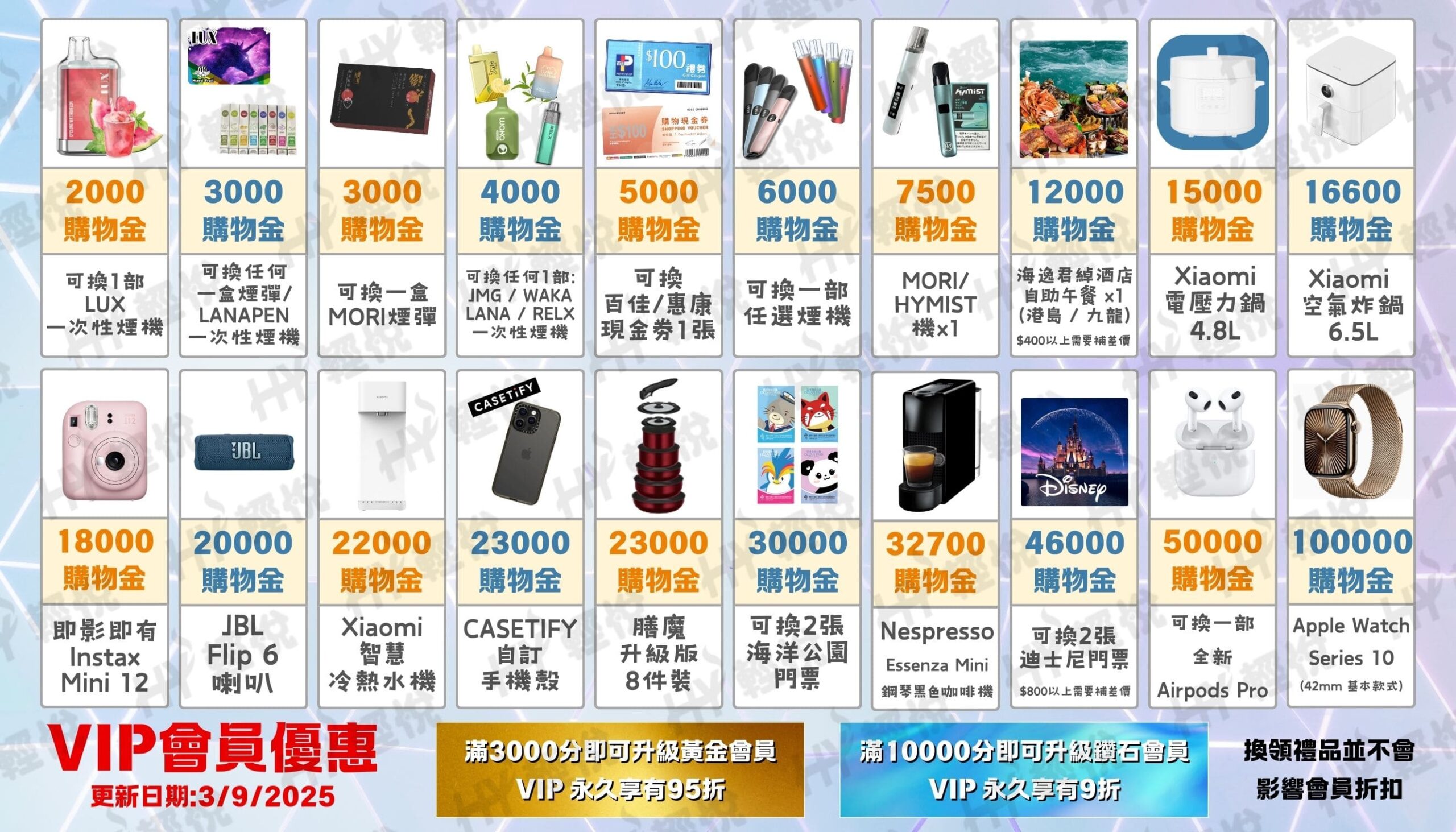 每當您在官網上消費,您將自動獲得購物金的回贈。每消費$1,您就獲得1分購物金,這些購物金可以在未來的購物中使用,為您的電子煙生活增添更多樂趣。更令人興奮的是,這些購物金沒有使用期限,您可以隨時使用,或者積累起來,直到找到最適合的時機。